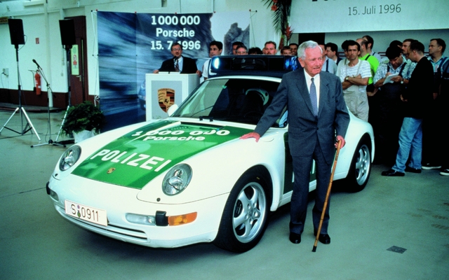 Two years before his death in 1998, Ferry Porsche honors the millionth Porsche built.