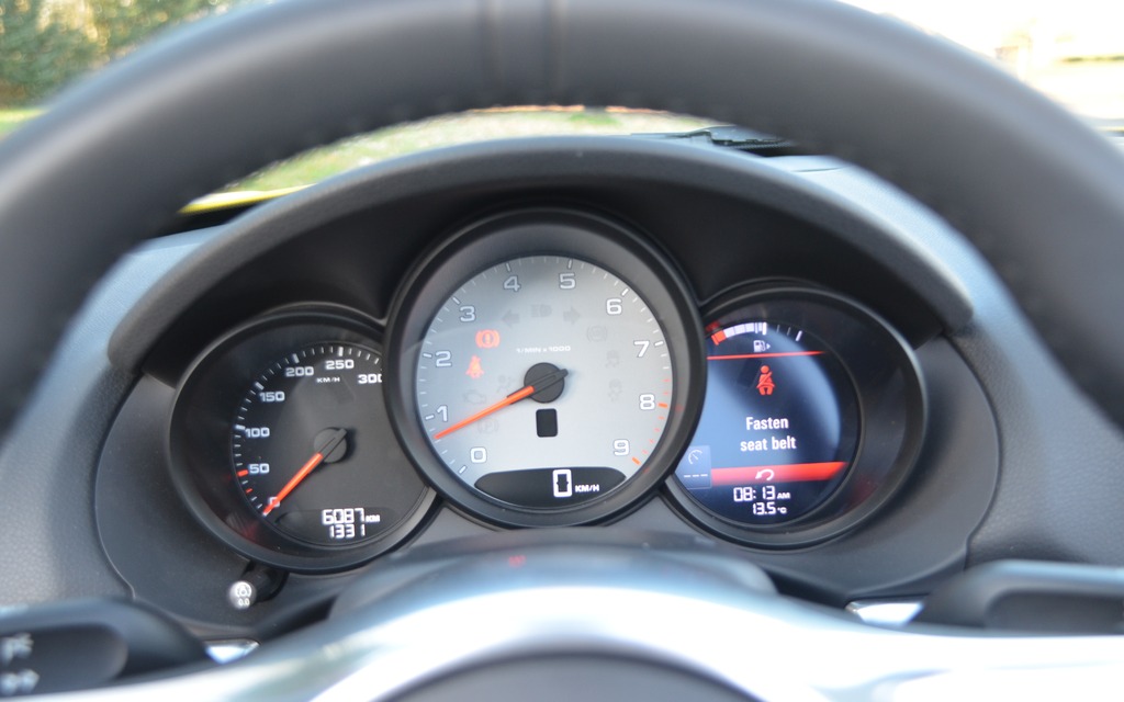 Chez Porsche, on a la course dans le sang. C'est pour ça que le compte-tours est le plus gros cadran et qu'il est placé en plein centre.