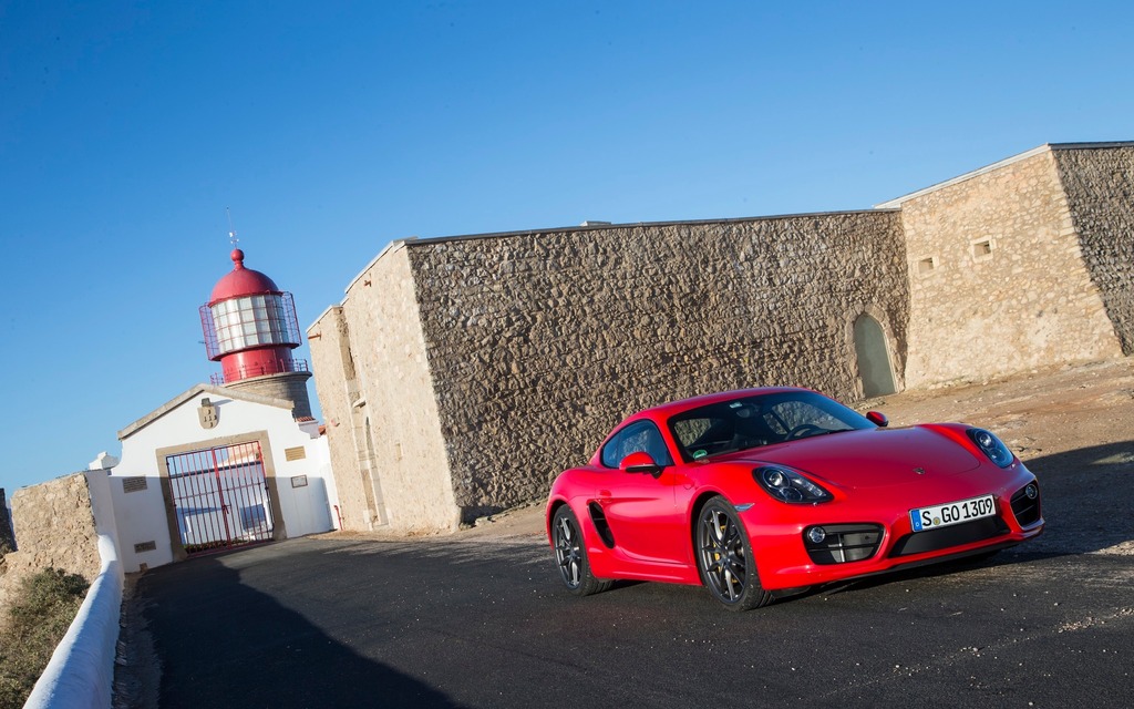 La Porsche Cayman S 2014 en plein soleil devant un magnifique décor au Portugal