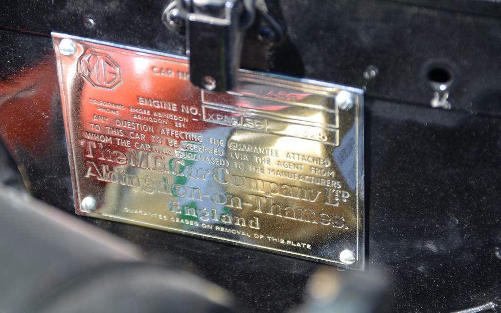 Au bas de la plaque, il est indiqué que la garantie se termine dès que ladite plaque est enlevée. Donc, le moteur de cette MG YA 1951 est encore sous garantie
