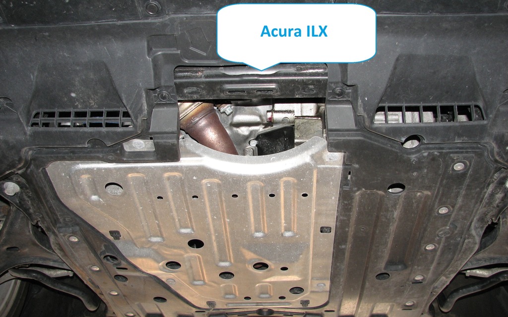 Sous la motorisation de l'Acura, de nombreuses plaques de plastiques permettent de protéger les organes mécaniques mais assurent aussi un bon écoulement de l'air.