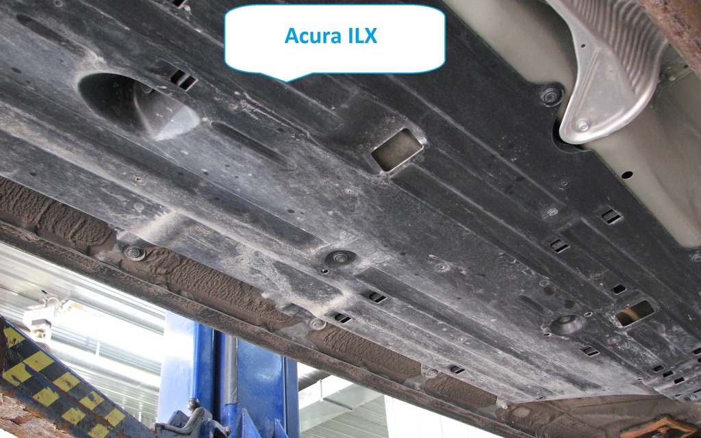 De chaque côté de la voiture, des plaques de plastique assurent une protection aux câbles en plus de protéger les éléments mécaniques de la rouille.