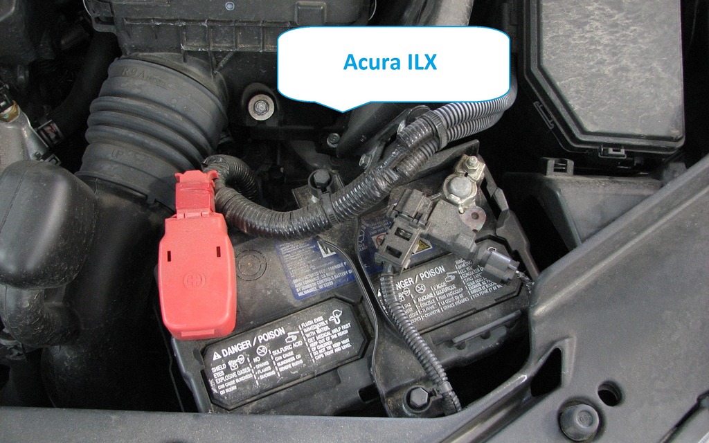 L'emplacement de la petite batterie de la ILX se situe à l'avant droit, facilement accessible.