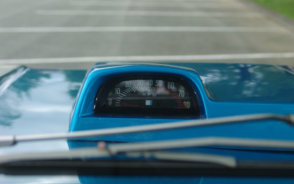 Le compte-tours sur le capot n'est pas fonctionnel pour le moment mais il sera bientôt réparé. D'ailleurs, ce type de compte-tours à l'extérieur ne semblait pas très fiable, peu importe la marque.