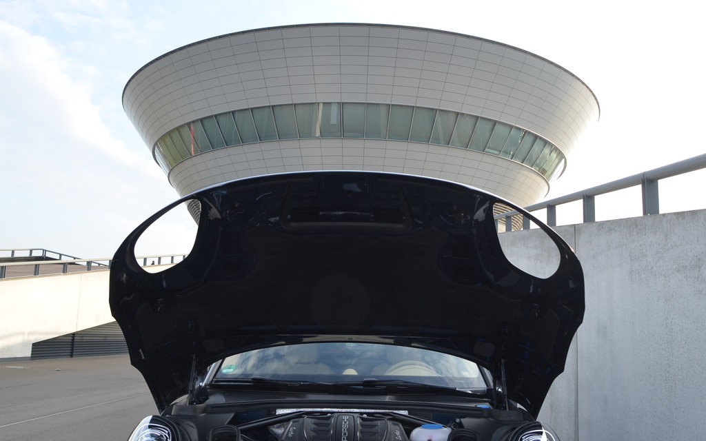 Pour une meilleure fluidité de l'air, les ingénieurs ne voulaient pas de séparation sur la partie supérieure du capot. On retrouve donc un capot à la MINI. Les phares restent fixes. Ce capot est une véritable oeuvre d'art d'ingénierie... qui coûtera une fortune à remplacer lors d'un impact avant.