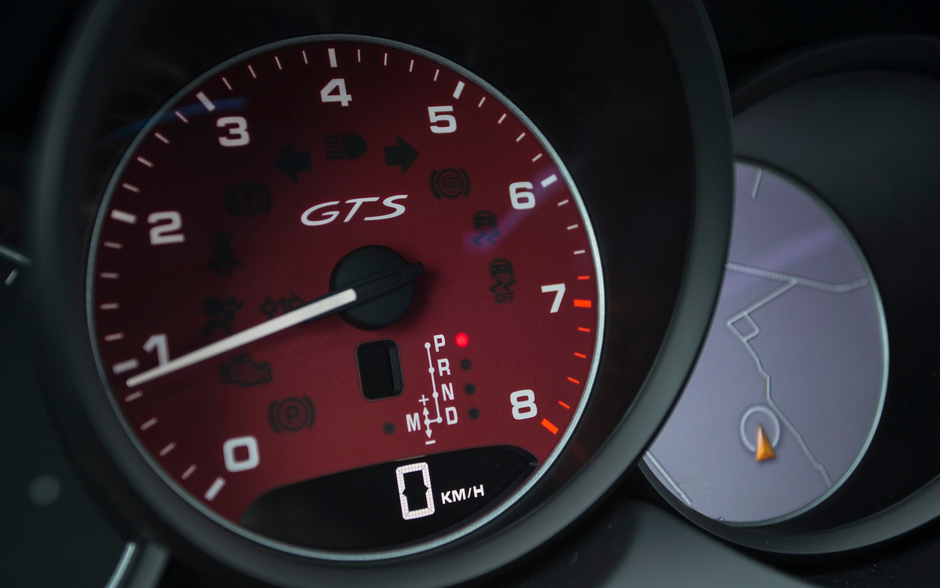 Porsche Cayenne GTS 2016 - Détail du tachymètre avec fond de couleur rouge.