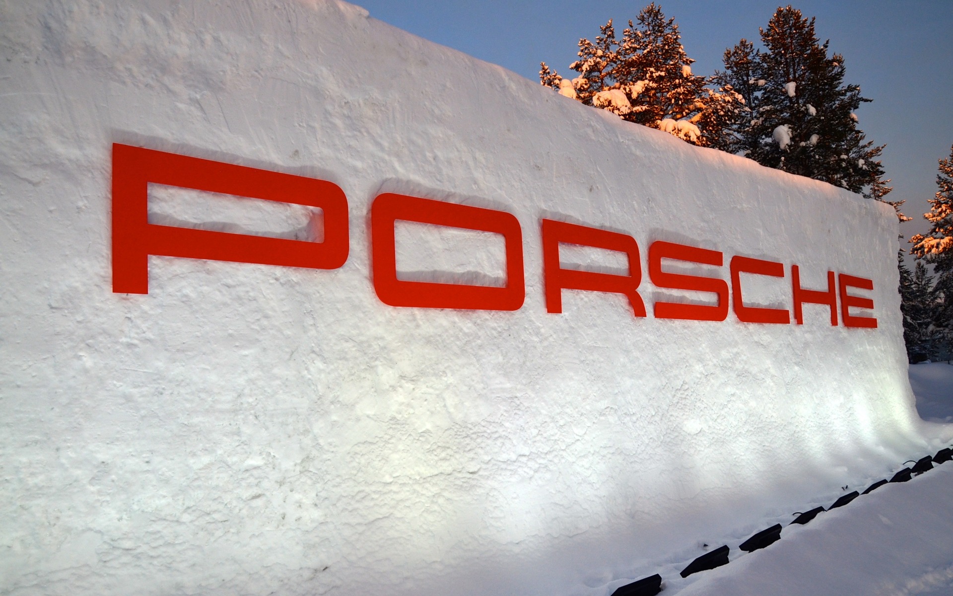Porsche Cayenne GTS 2016 - Un des éléments du décor: mur de glace de trois mètres de haut avec logo Porsche