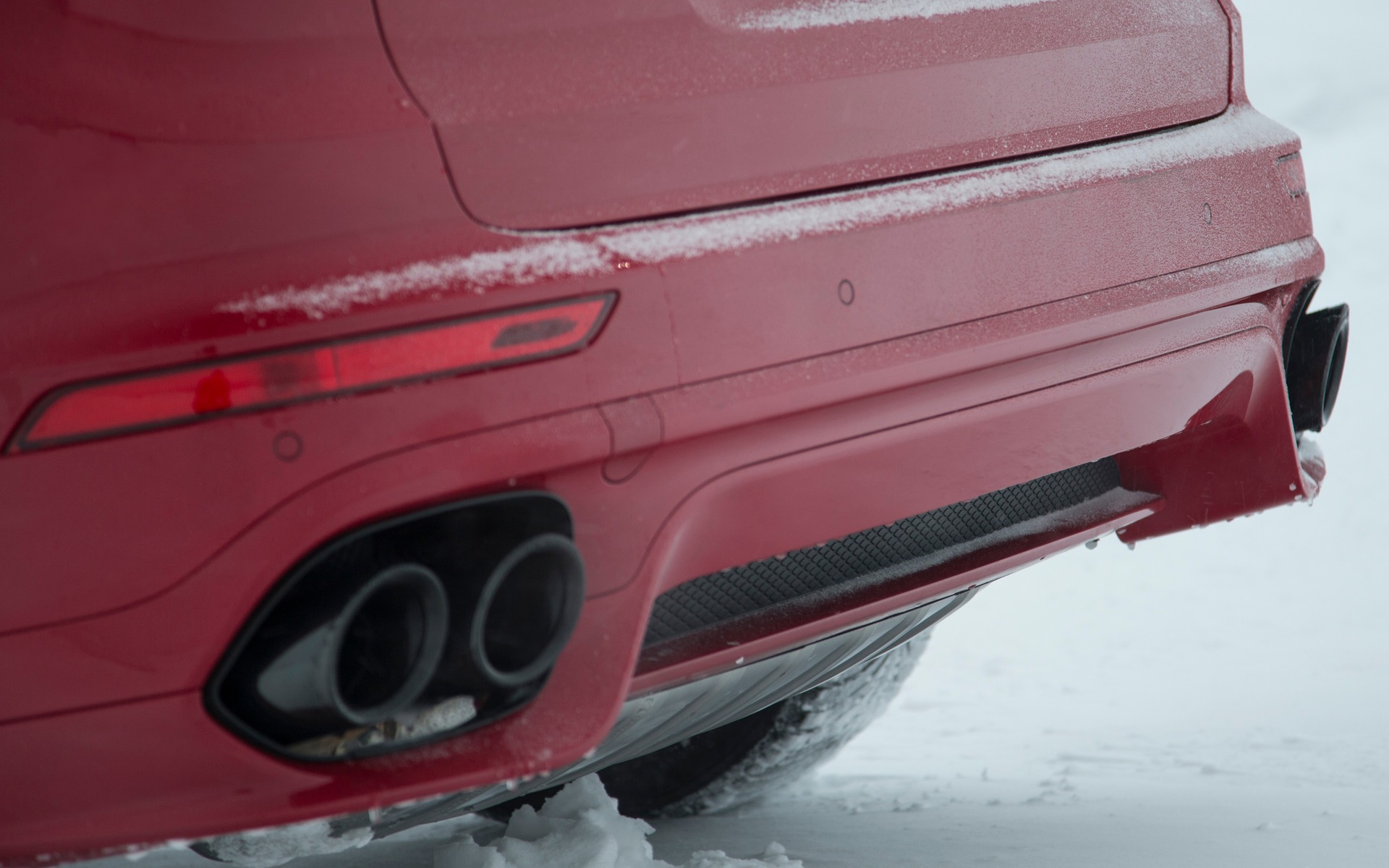 Porsche Cayenne GTS 2016 - Détail des échappements avec embouts peints en noir.