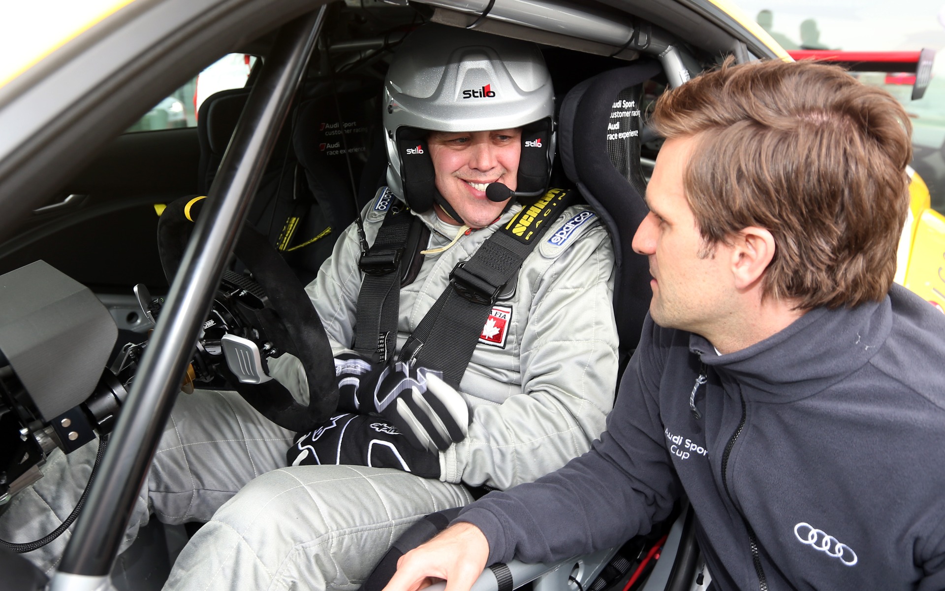 Audi Sport TT Cup - Gabriel Gélinas écoute les conseils de Markus Winkelhock, pilote Audi en Série GT et « coach » des pilotes de la Audi Sport TT Cup.