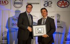 Michel Deslauriers au nom d'Alain Morin et de l'équipe du Guide de l'auto, deuxième place du Prix du meilleur design de publications imprimées pour le Guide de l'auto 2017.
