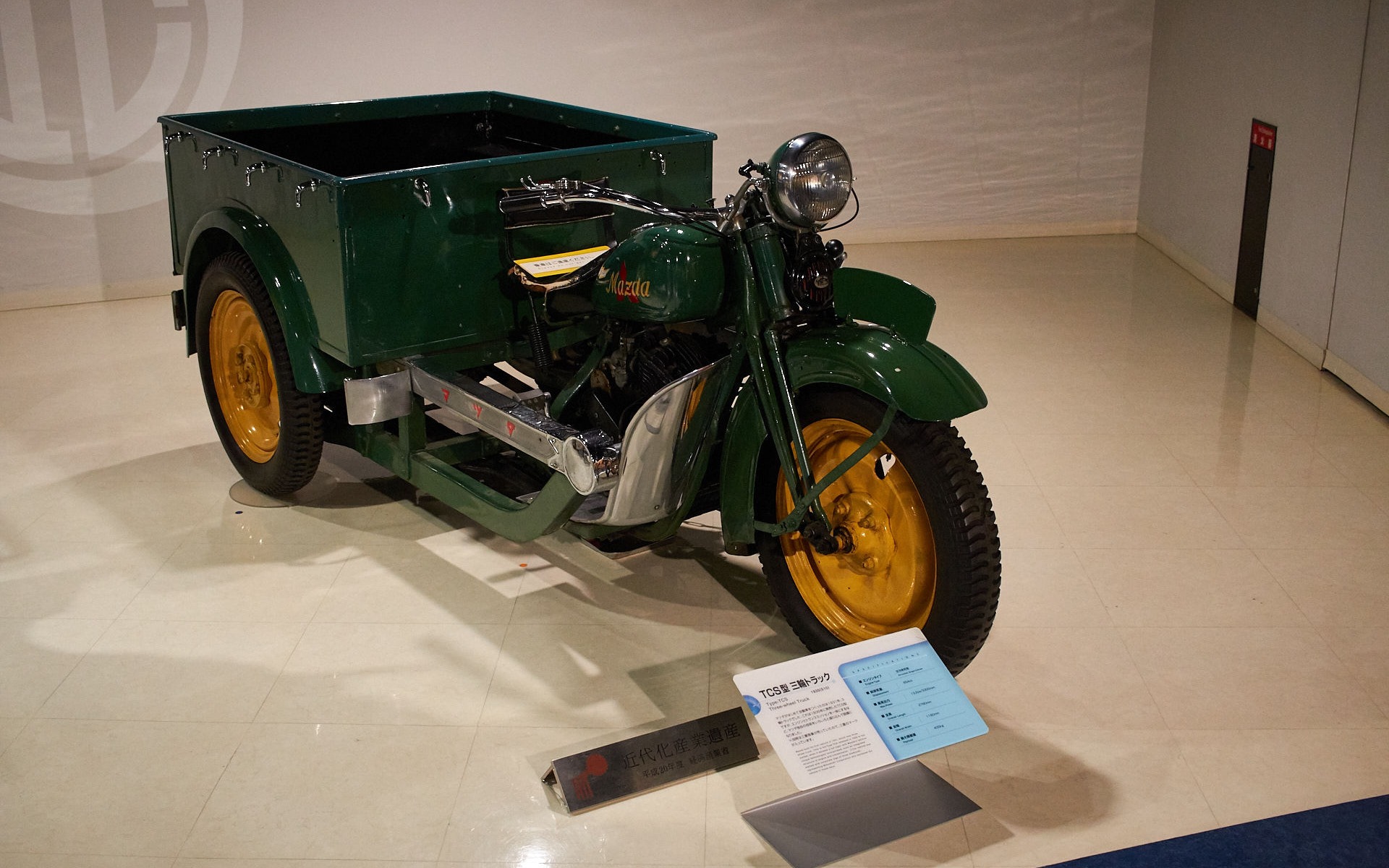 Le premier véhicule de la marque, une moto commerciale à trois roues...