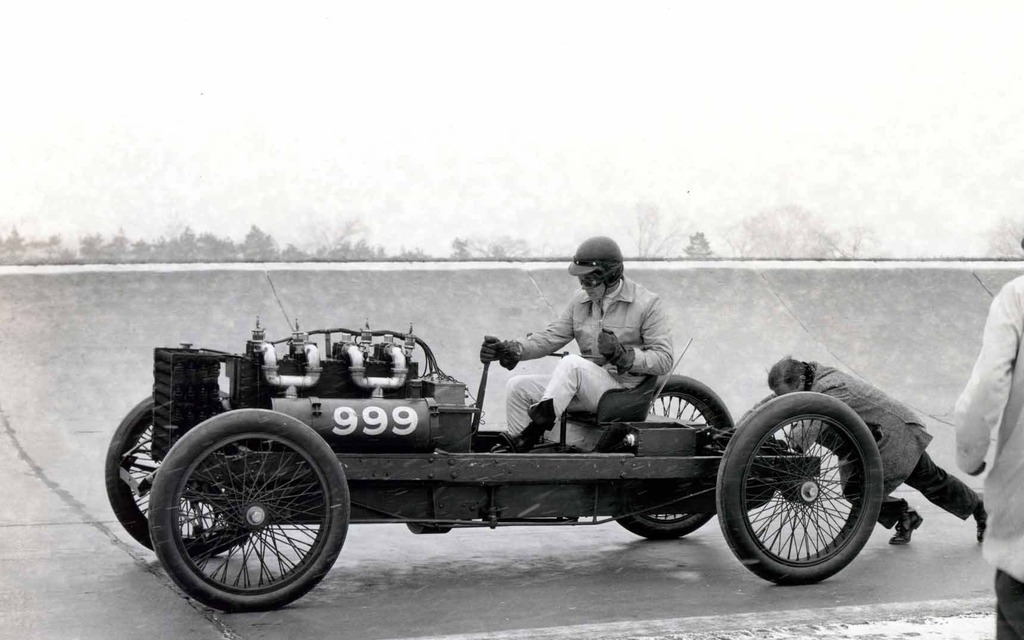 Ford 999 1902 : quatre cylindres de 18,8 litres, 71 chevaux, vitesse maximale de 147 km/h! Méchante bagnole pour l'époque.