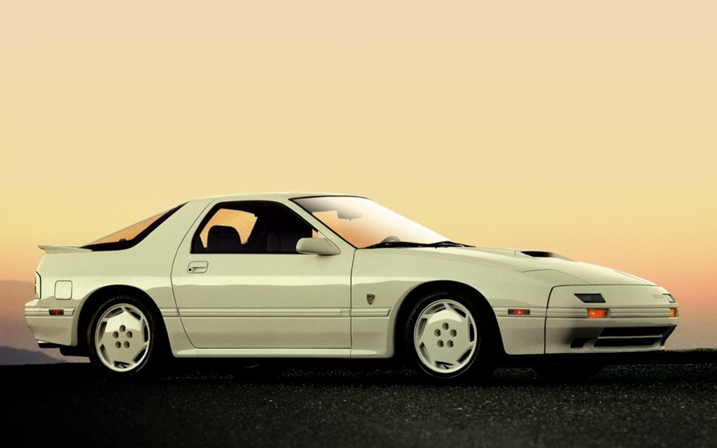 Deux générations de la RX-7 ont été vendues au cours des années 80, incluant la première jusqu’en 1984. Cette dernière était équipée d’un moteur unique, un moteur rotatif de 1 146 cm3 produisant quelque 100 chevaux, bien que la RX-7 GSL-SE profitait d’une cylindrée de 1 308 cm3 avec un peu plus de puissance. La deuxième génération de la RX-7, disponible en coupé et en décapotable à partir de 1986, nous a immédiatement plu, notamment en version Turbo II avec 182 à 200 chevaux, selon l’année-modèle.