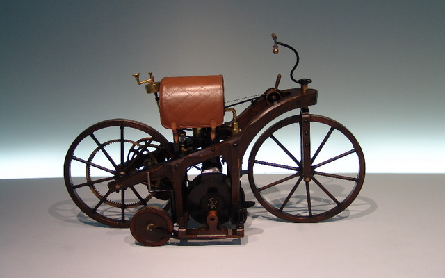 Le Riding Car de Gottlieb Daimler est la première motocyclette à avoir vu le jour. Il s'agissait d'un véhicule d'essai pour un moteur à un cylindre. Le véhicule vu au musée est une réplique