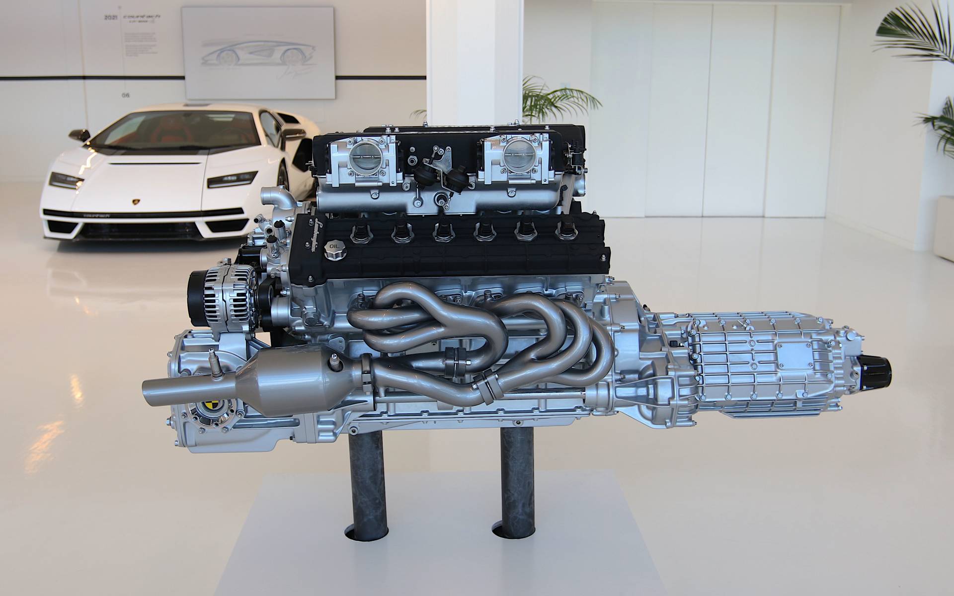 L'énorme V12 de la Lamborghini Murciélago LP-640. Sa cylindrée de 6,2 litres lui permet de vélopper une puissanfce de 580 chevaux (normes européennes).