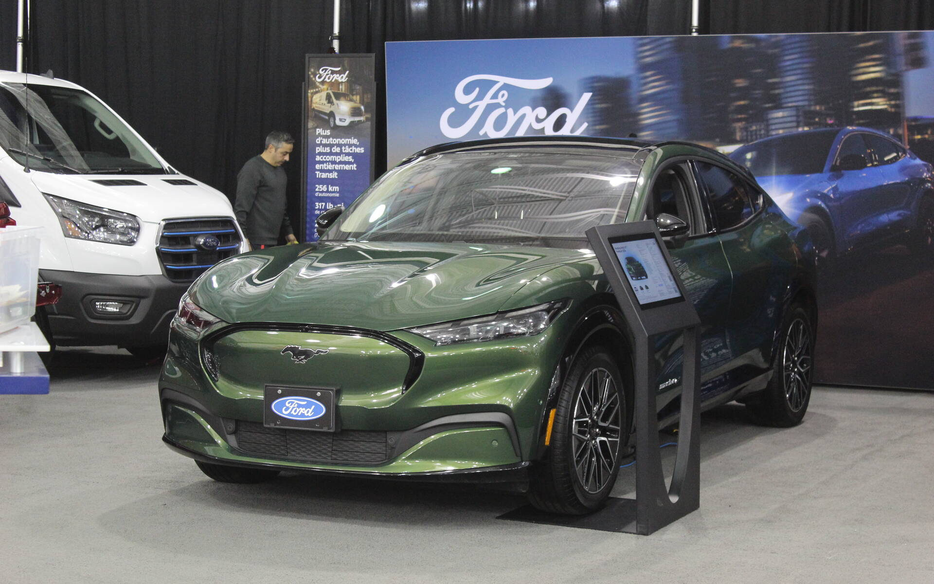 Parmi les véhicules exposés par Ford, le Mustang Mach-E, le F-150 Lightning et le E-Transit y figurent.