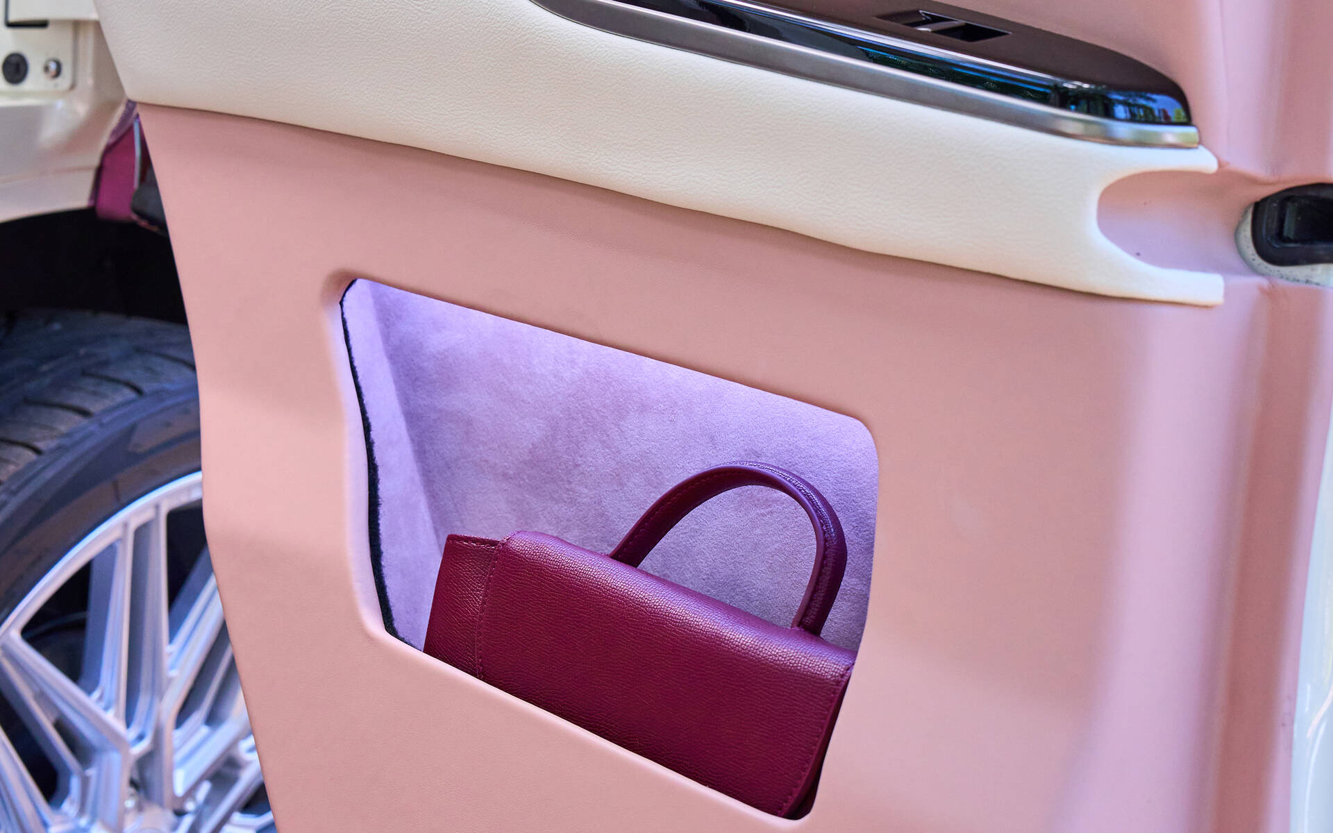 En ouvrant les portières avant, on découvre un espace idéal pour ranger un sac à main.