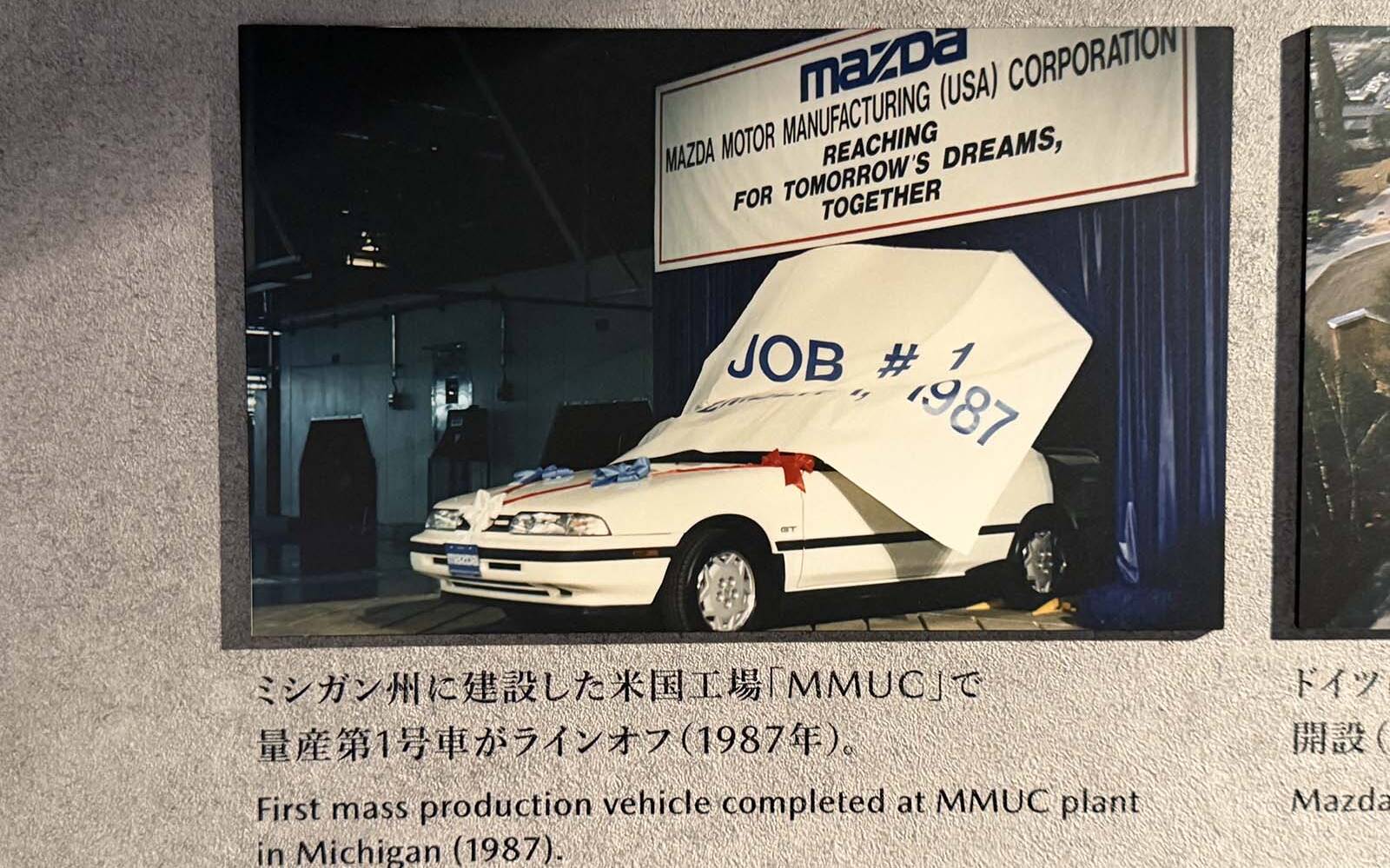Mazda MX-6 (JOB 1) 1988 — La fabrication des Mazda 626 et MX-6 a débuté dans cette nouvelle usine de Flat Rock dans le Michigan, en 1987. La voiture ici photographiée se trouvait jusqu'à tout récemment dans le stationnement extérieur des bureaux de Mazda USA à Irvine, en Californie, où le soleil et le manque d'attention ont malheureusement causé sa perte. À noter que Mazda a fabriqué des véhicules à Flat Rock jusqu'en 2012, Ford ayant depuis repris le contrôle de l'endroit.