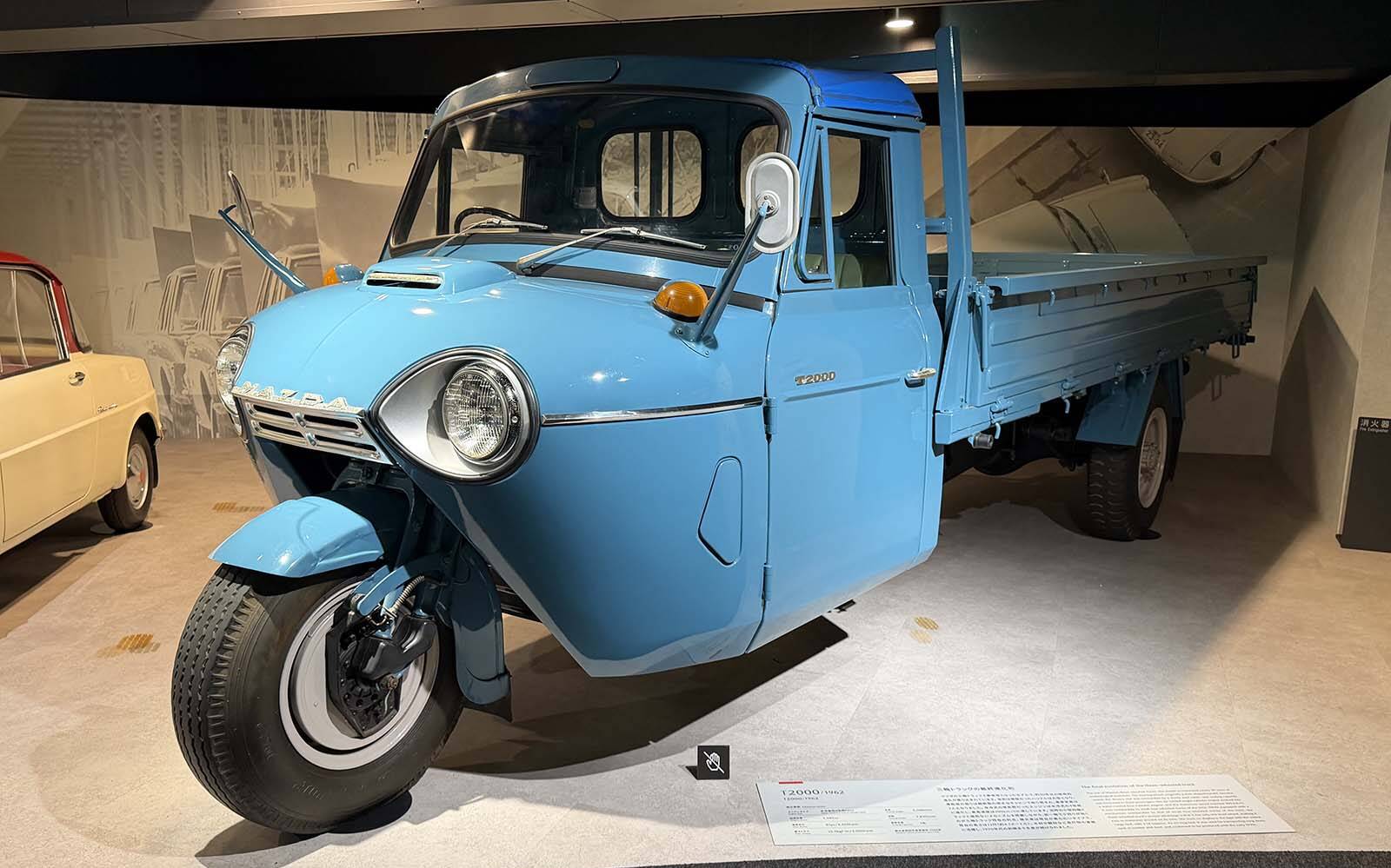 Mazda T2000 1962 — Avec une caisse longueur de 4,1 mètres (13 pieds), le Mazda T2000 allait être produit jusqu'au début des années 70. Il s'agit du dernier véhicule à trois roues produit par le constructeur, qui allait tout même parvenir à atteindre 100 km/h en vitesse de pointe.
