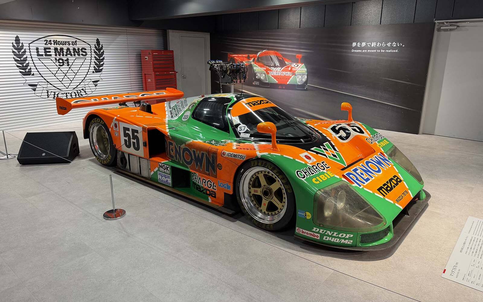 Mazda 787B 1991 — Équipée du moteur rotatif R26B, c'est avec cette voiture que le constructeur nippon a remporté la victoire à la course d'endurance des 24h du Mans. C'est à la 21e heure de l'épreuve que la voiture a pu devancer Jaguar et Mercedes-Benz en prendre la position de tête, pour ne plus jamais la perdre jusqu'à la toute fin.