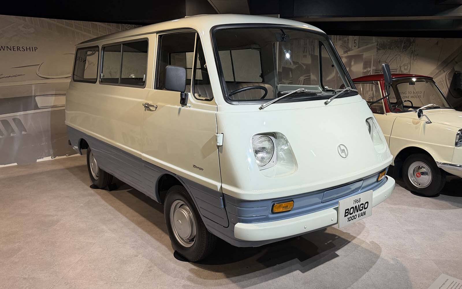 Mazda Bongo (première génération) — Introduite en 1966, cette fourgonnette est toujours produite aujourd'hui, en partenariat avec Toyota et Daihatsu. Un produit qui fait partie des meubles sur le marché japonais, où elle a lancé une nouvelle catégorie de véhicules dans une formule semblable à celle de Volkswagen. Ici, un modèle de 1968 à moteur à quatre cylindres de 1,0 litre, produisant 48 chevaux.